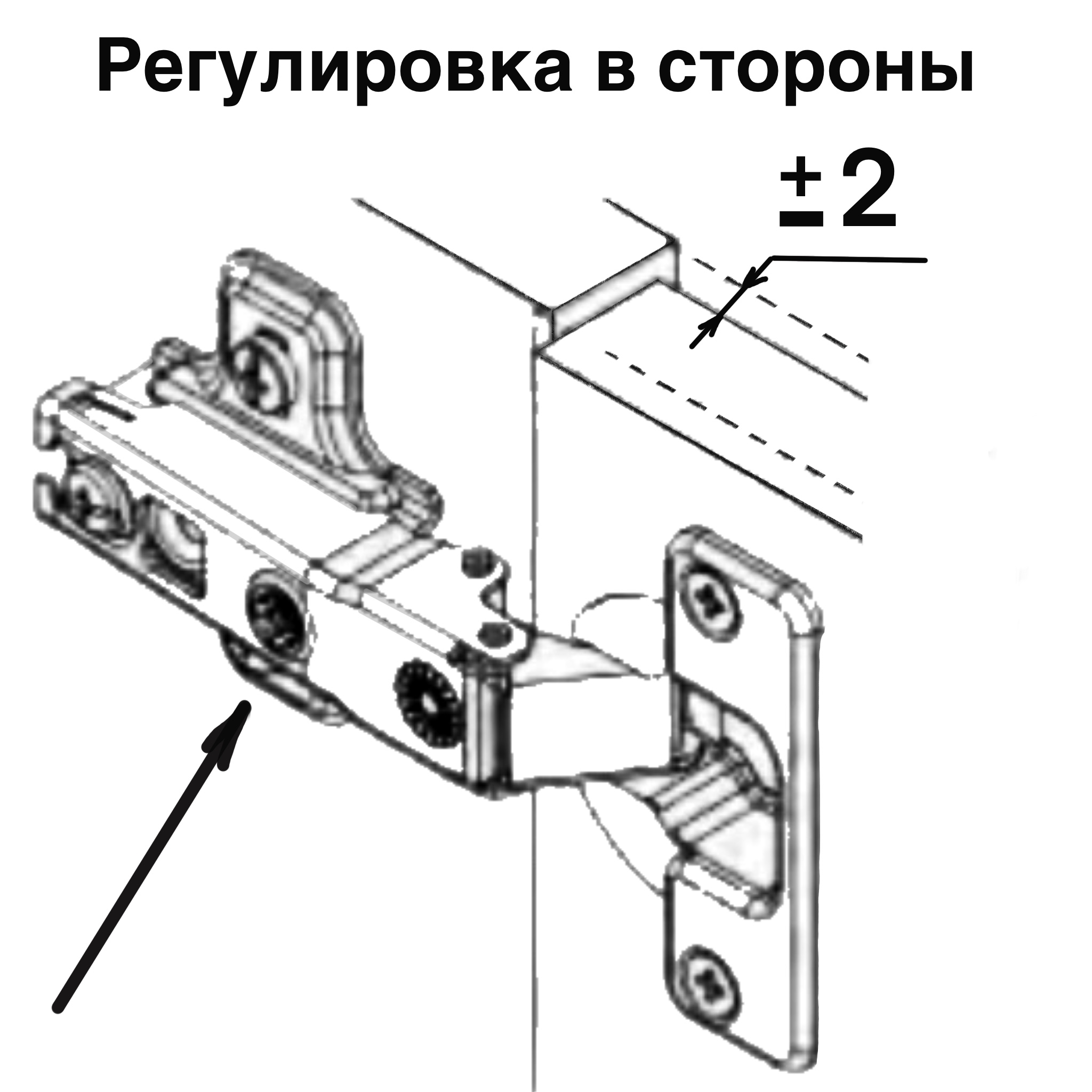 Петли регулируются по высоте, в стороны и глубине.